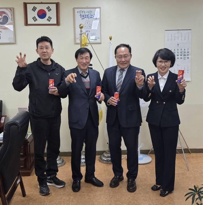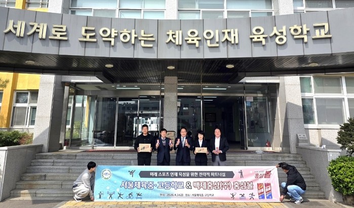 | ▲ (왼쪽 2번째 부터)조성정 홍삼볼 회장, 송길성 서울체고 교장, 이광자 홍삼볼 전무이사/사진제공=홍삼볼 |