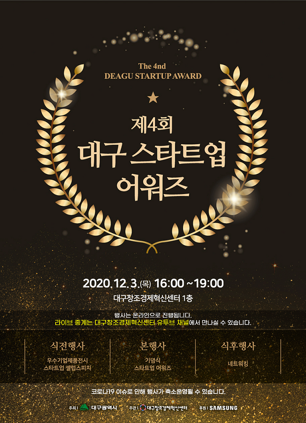 이번에 진행된 행사는 ▲홍의락 대구광역시 경제부시장, ▲노태문 삼성전자 무선사업부장(사장), ▲이재하 대구상공회의소장, ▲이재일 대구창조경제혁신센터장 등 시상자와 수상자만 참석하고, 온라인 생방송 비대면 방식으로 진행했다.