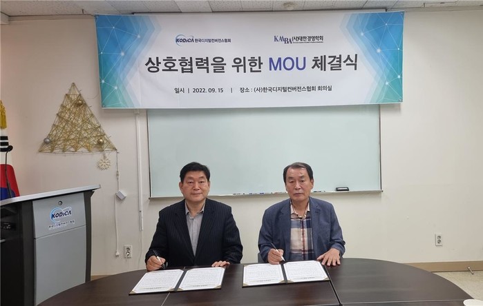| ▲ (왼쪽부터)문형남 대한경영학회장과 이근구 (사)한국디지털컨버전스협회장<사진제공=(사)대한경영학> |