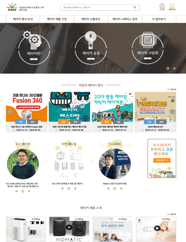 국민 누구라도, 인근의 ‘메이커 스페이스’를 검색 및 비교하고 필요한 장비와 교육 프로그램 등을 예약할 수 있는 온라인 통합 플랫폼 <메이커올(Makeall.com)>도 본격적으로 운영한다고 밝혔다. 특히, 이 플랫폼은 ‘메이커 스페이스’ 사용자의 만족도 평가 등을 기반으로 우수한 ‘메이커 스페이스’가 상단에 노출될 수 있도록 구성하였고, 이용자가 우수 메이커를 추천하는 코너를 마련하는 등의 <수요자 평가 기반 시스템>을 도입했다.