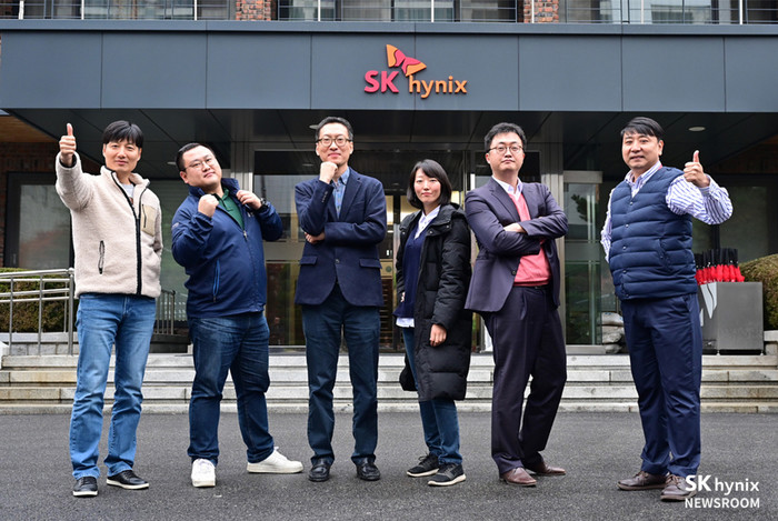 | ▲ SK하이닉스 사내 벤처 프로그램 '하이개리지' 의 1기 졸업생들의 기념 사진 촬영이다. (사진출처=SK하이닉스) |