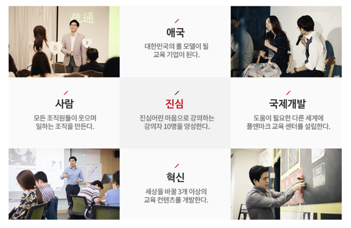 | ▲ 다양한 차별화 교육을 전개하고 있는 교육 컨설팅 "폴앤마크" 이다. (사진출처=폴앤마크 홈페이지) |