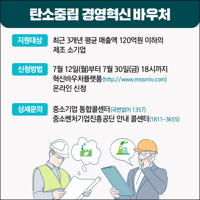 고탄소 배출업종 등을 고려해 최종 선정된 기업에게는 기업당 최고 5,000만원 한도에서 바우처 발급금액의 90%를 지원한다.