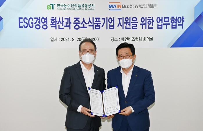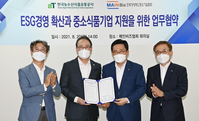 이번 협약을 통해 양 기관은 유망 중소식품기업 발굴과 육성을 도모하고, ‘코리아 그린푸드 데이’ 캠페인 공동전개 등 ESG경영 실천에 협력하기로 했다.