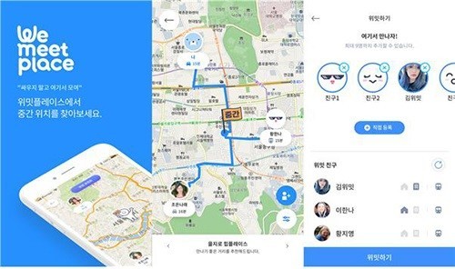| ▲ 다자 이동 경로를 '등시선 알고리즘' 으로 분석해 모임 장소를 추천하는 '위밋플레이스' (사진출처=위밋) |