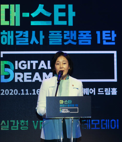 | ▲ '대-스타 해결사 플랫폼 1탄'의 개회사를 담당하는 박영선 중기부 장관이다. (사진출처=박영선 블로그) |