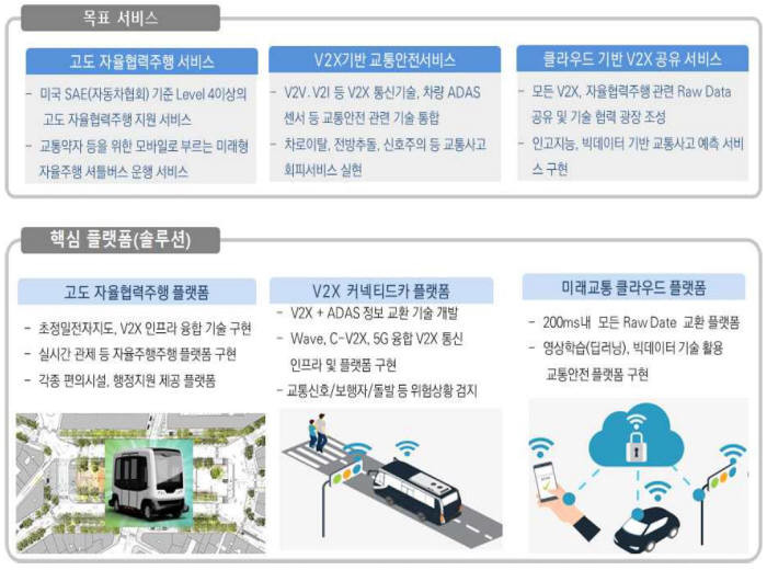 | ▲ (주)에스케이텔레콤이 추진하고 있는 '통합 교통 시스템 개발' 의 5G 지능형 교통체계 구상안이다. (사진출처=SK) |