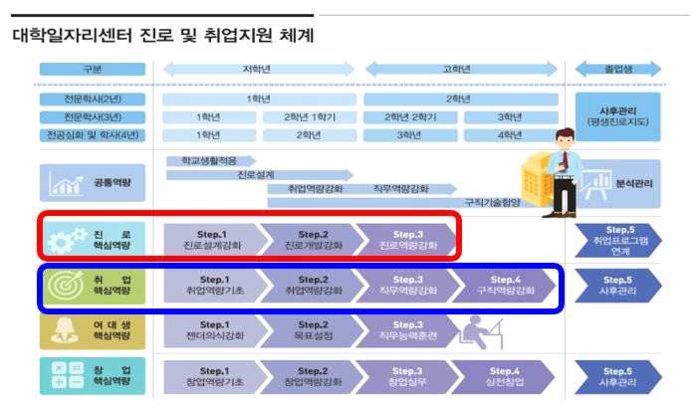 | ▲ 대학 일자리센터 진로 및 취업지원 체계에 대한 인프라 구축과 체계적 구조가 개설됐다. (사진출처=고용노동부) |