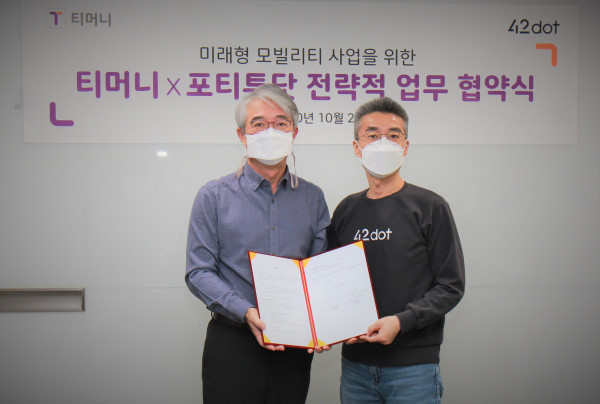 [더스타트 = 한미경 기자] 자율주행 ‘타스(ATAAS)' 스타트업으로 유명한 ’포티투닷(42DOT)'은 지난 26일, 티머니(T-Money)와 미래형 모빌리티 서비스 사업을 추진하기 위한 업무협약을 체결했다고 밝혔다