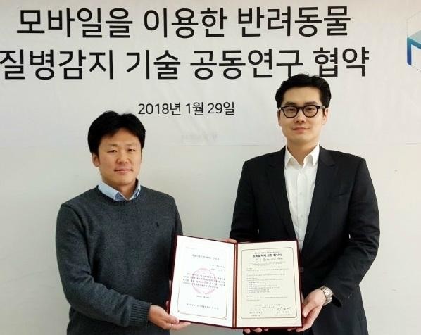 | ▲ 덕성여자대학과 함꼐 반려동물 질병감시 기술 MOU 를 협악했다. (사진출처 = 부산일보 ) |