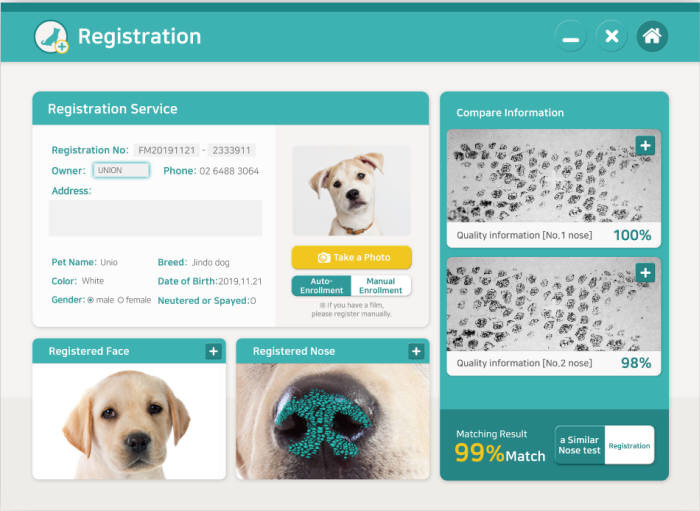 A : 약, 1년 6개월 정도의 개발기간이 있었다. 창업 후 2018년도 매출은 4억 5천만 원 수준이었으며 금년 상반기까지 100억 원의 매출을 달성했다. ‘어헤드(Ahead)'의 양산과 함께 고양이와 강아지의 코를 활용해서 신원 인식을 할 수 있는 솔루션 “디텍트(Defect)" 또한 개발했다. “DB 펫 손해보험”에서 대한민국 최초 상용화가 되었는데 동물의 코는 인간의 지문처럼 고유한 무늬가 있다는 점을 활용한 것이다.
