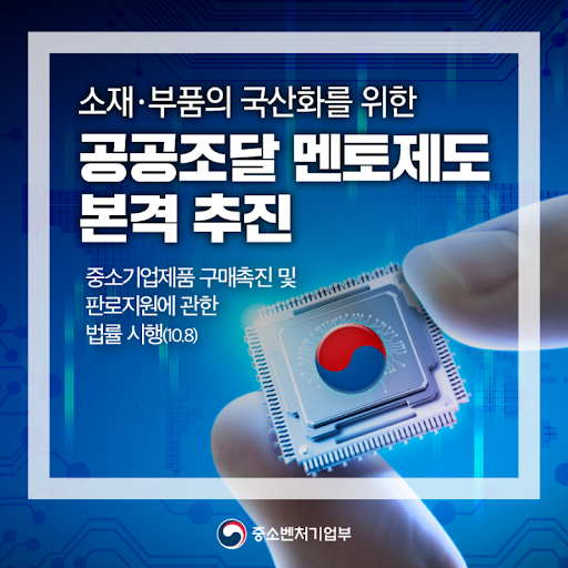 [더스타트 = 한미경 기자] 중소벤처기업부는 대·중소기업간 상생협력을 통해 개발한 중소기업제품의 원활한 판로 개척을 장려하기 위한 「3차 공공조달 멘토 제도」 에 참여할 기업을 오늘부터 내년 2월 1일까지 모집한다고 공표했다.