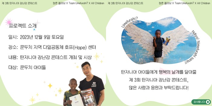 ‘탄자니아 장난감 경진대회’는 2019년 탄자니아의 아이들에게 행복의 날개를 달아주기 위해 김태균 탄자니아 한인회장의 기획으로 시작된 가운데, 이번 행사에서는 이전 행사보다 참가자 수가 늘어난 200여 명의 아이들이 참가할 예정이다.