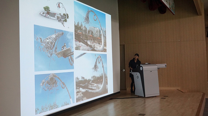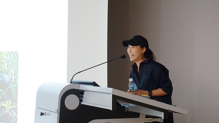 | ▲2012 영국 첼시플라워쇼 쇼가든 부문 금상을 수상한 황지해 작가각 특별 강연을 하고 있다. |