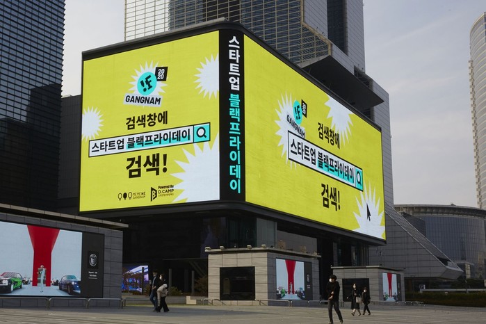| ▲ 삼성동 코엑스 근처에서 광고하고 있는 "스타트업 블랙 프라이데이" 현판이다. (사진출처=강남구청) |