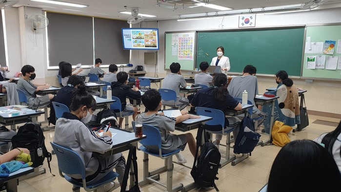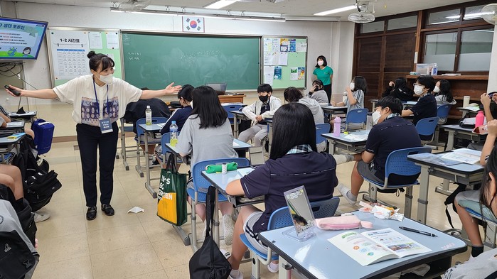 | ▲ ‘포코스쿨’ 수업에 참여하고 있는 안산 상록중학교 학생들<사진제공=에코맘코리아> |