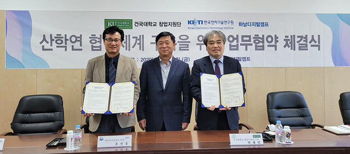 [더스타트 = 윤상학 기자] 건국대학교 창업지원단은 한국전자기술연구원과 공동으로 하남디지털캠프 3층 디지털 ‘메이커-스페이스’ 대회의실에서 지난 23일, 3D프린팅·ICT 분야 산학연협력 체계를 구축하기 위해 상호업무협약(MOU)를 체결했다고 밝혔다.