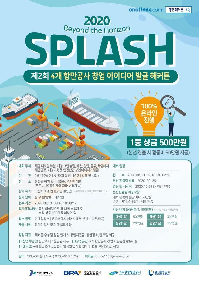 [더스타트 = 박찬현 기자] 인천항만공사(IPA)가 부산, 울산, 여수·광양항만공사와 공동으로 ‘SPLASH, 창업 아이디어 발굴 언택트 해커톤’을 개최한다.