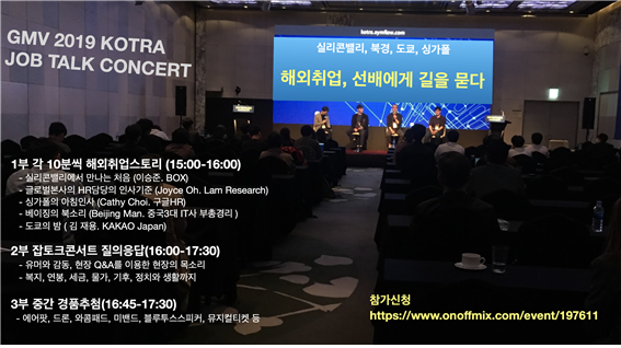 그러면서 “그러나 해외 취업에 대한 높은 관심도에 비교해 실질적인 관련 정보는 부족한 상황에서 이번 잡토크콘서트가 직접 현장에서 성공 사례 담을 들을 수 있는 소중한 시간이 되었다”라고 이번 콘서트에 대해 평했다.