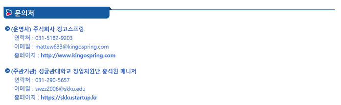 더 자세한 내용은 'K-Startup' 홈페이지에서 확인할 수 있으며 유관 문의처는 다음과 같다.