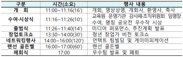 | ▲ '차세대 영재 기업인 네트워크 출범식' 을 진행하는 순서와 주요 행사내용이다. (사진출처=특허청) |