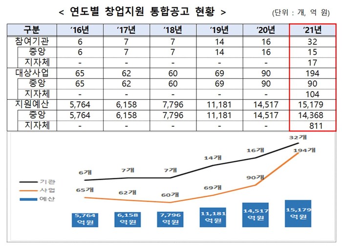중소벤처기업부(장관 박영선, 이하 중기부)는 ’16년부터 중앙부처의 개별 창업지원 사업공고를 통합해 ‘창업지원포털 (K-Startup)’ 홈페이지를 통해 안내해오며, 지난해까지 중앙부처 사업만을 대상으로 통합공고를 시행해왔다.