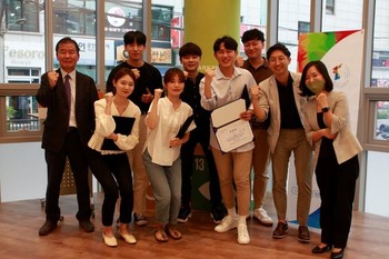 | ▲ 2020년도 Leading Green 액셀러레이팅 참여기업으로 선발된 LG소셜펠로우 10기가 단체사진을 촬영하고 있다. |