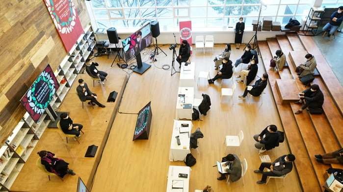 | ▲ 패널토크가 진행중인 데모데이 진행 사진 |