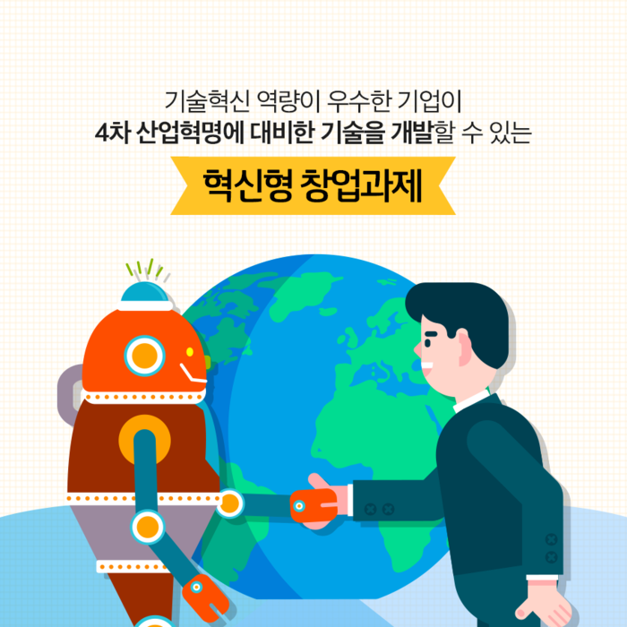 4차 산업 혁명을 준비하는 창업 기업 중에서, 유형에 따라 미래 신사업 BIG 3 분야에 대한 기술 개발을 지원하고 있다. 혁신 우수 기술로 선정된 아래 3가지 분야의 창업 중에서 7년 이하의 중소기업이며 하나라도 유형에 해당된다면 ‘혁신형 창업 과제’로 분류된다.