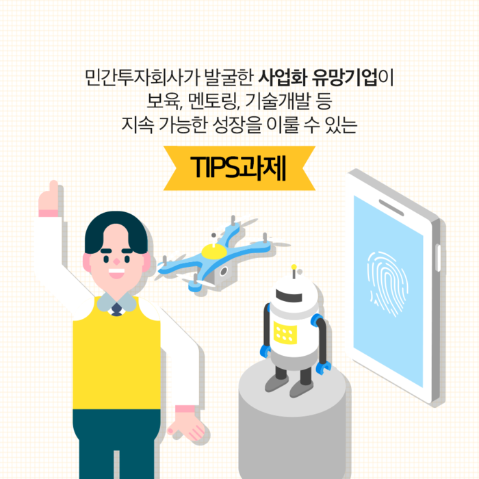 액셀러레이터 및 민간 투자 회사가 발굴한 기술창업팀에게 보육 및 멘토링, 기술 개발 등의 분야에서 지속 가능한 성장이 가능하도록 지원하고 있다. 성공한 벤처기업의 멘토링과 교육, 투자를 정부 R&D 매칭을 통한 종합 프로그램이며 민간 영역의 전문 엔젤 투자사가 스타트업에 투자를 하면 정부가 자동으로 R&D 자금을 매칭시켜주는 전형적인 '민관 협력 방식'으로 최대 2년 동안 약 5억 원 정도를 지원하고 있다.
