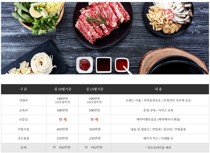 | ▲ '샤브담' 홈페이지에 공개적으로 초기 창업비용과 운영비를 공표했다. (사진출처 = 샤브담 홈페이지) |