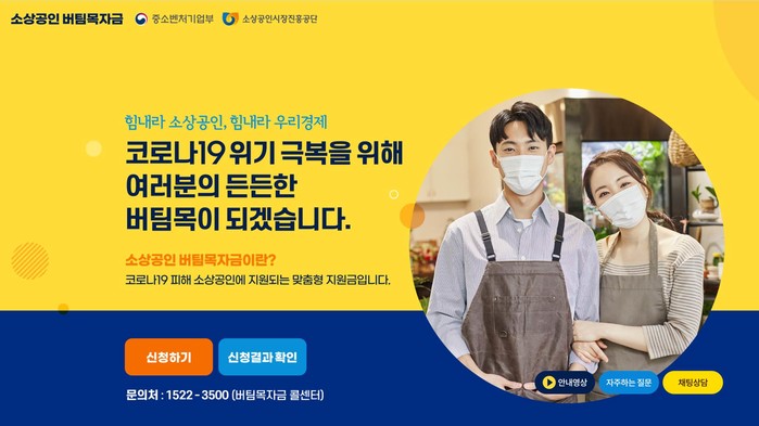 이은청 중기부 소상공인정책과장은 “온라인을 통한 신속지급 대상자의 신청은 평일・공휴일 구분없이 24시간 어느 때나 가능하다”면서, “알림톡을 받으면 ‘버팀목자금.kr’에 접속하여서 지원금을 신청하시기 바란다”고 말했다.