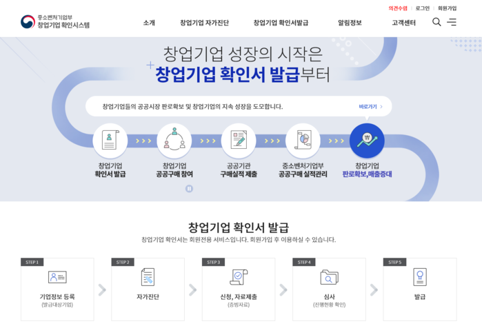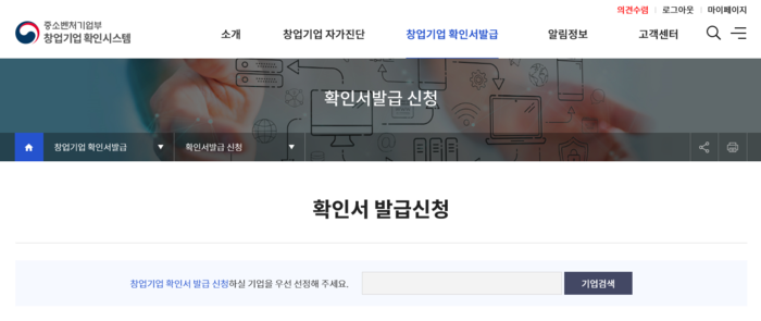 해당 시스템에 대한 구축은 「창업기업제품 공공기관 우선구매 제도」 에 참여하는 기업이 창업기업 여부를 확인하고 온라인으로 ‘확인서’를 발급받을 수 있도록 하는 조치이다.
