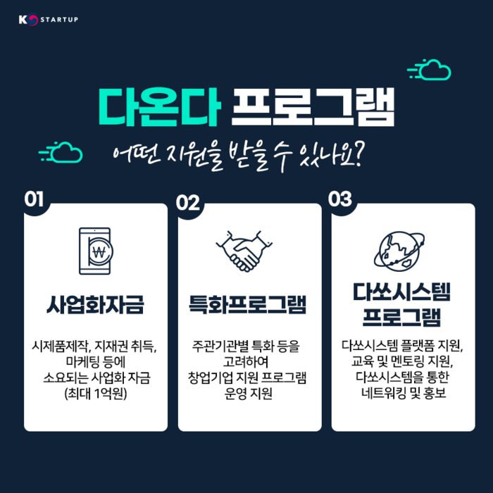 본 프로그램은 시제품 제작과 지적재산권 취득 그리고 마케팅 등에 소요되는 사업화 자금을 최대 1억 원까지 차등 지급하며 인건비, 외주용역비, 교육훈련비와 광고 선전비 등의 사업비목 등도 체계적으로 지원할 것으로 보인다. 또한, ㈜다쏘시스템 협업 프로그램과 함께 주관 기관 특화 프로그램 등의 부가적인 기술 지원도 포함되어 있으므로 단순하게 수익창출성과 사업성만 검토할 것이 아니라 대표자 및 직원의 보유역량 및 자금소요 조달 계획, 고객 요구 사항 충족과 대응 방안 나아가 사회적 가치 실현 계획까지 평가한다.