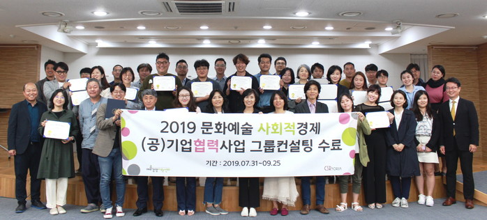 (공)기업협력사업 그룹컨설팅은 <2019 문화예술 사회적경제 (공)기업협력사업 공모>에 참여한 예술기업·단체를 대상으로 (공)기업 사회공헌 담당자로부터 강의와 컨설팅을 받으며 기업과의 협력사업 기획에 실질적인 도움을 받을 수 있도록 진행됐다.