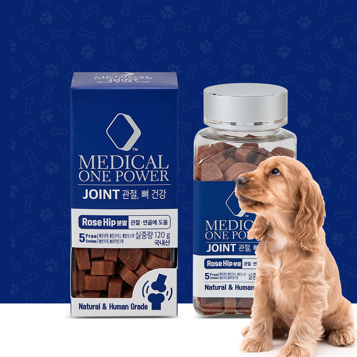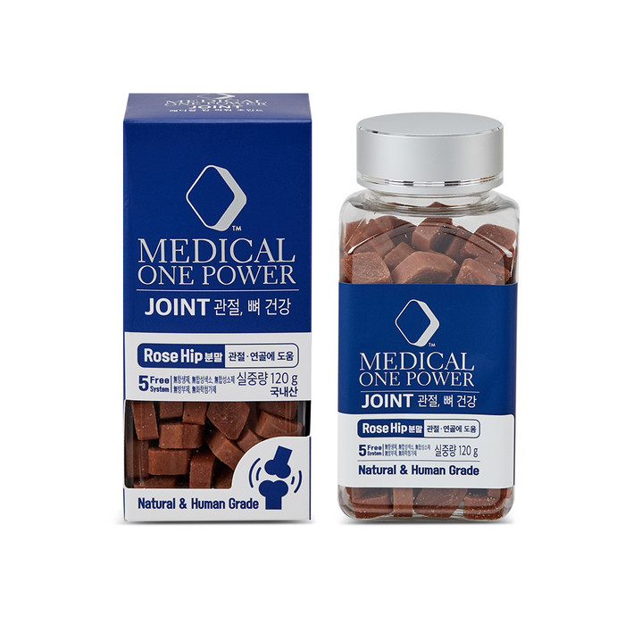 메디컬 원파워 조인트(MEDICAL ONE POWER JOINT)는 반련 동물의 관절과 연골 건강을 위해 국내최초로 특수 공법으로 제조된 덴마크산 유기농 로즈힙(GOPO)분말을 트릿에 담았다. 로즈힙 분말은 칼슘 함량이 우유보다 3배, 비타민C 함량은 오렌지보다 9배이상 함유되어 있으며, 천연항염, 항산화 성분이 풍부해 연골염증 억제 및 관절,류마티스 통증 완화에 크게 도움을 준다