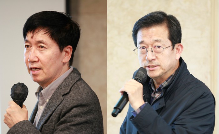 | ▲ (왼쪽부터)나관식 서원대학교 교수, 김돈정 한국콘텐츠진흥원 PD/사진제공=한국지식서비스산업협의회 |