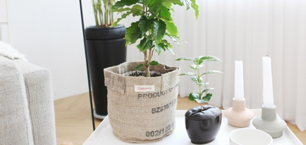 | ▲ 커피 포대가 화분으로 변화 모습 |