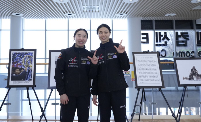 | ▲ 19일 충북 진천선수촌에서 배드민턴 여자복식 공희용(왼쪽) 김소영(오른쪽)이 맞춤형 스페셜 팩을 후원 받고 기념촬영을 하고 있다/사진제공=피엠인터내셔널코리아 |