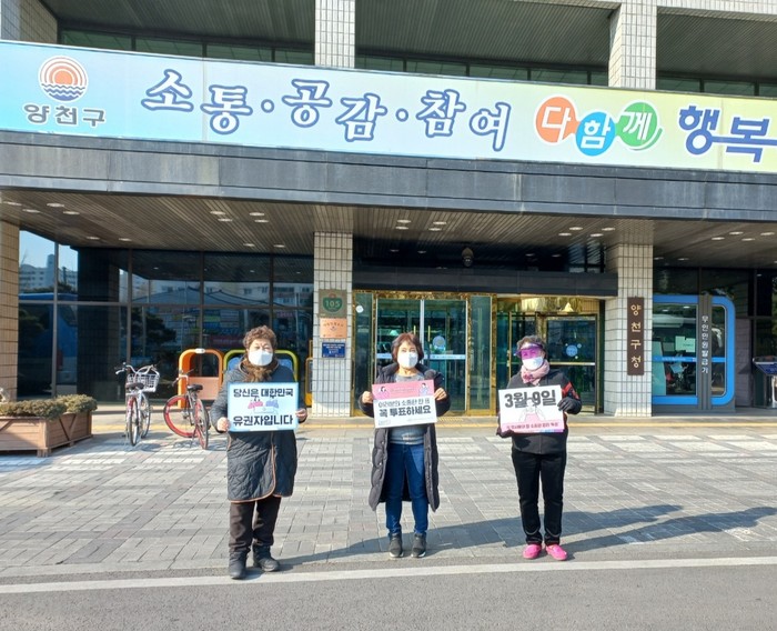 (사)한국여성유권자서울연맹(회장 이섬숙)은 지난 2월 8일부터 2월 13일까지 서울의 각 구 투표소 근처와 이동인구가 많은 곳에서 투표참여 독려 캠페인 활동을 진행했다.