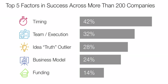 | ▲200개가 넘는 회사들이 꼽은 성공 요소. 타이밍이 42%로 1위이다. |