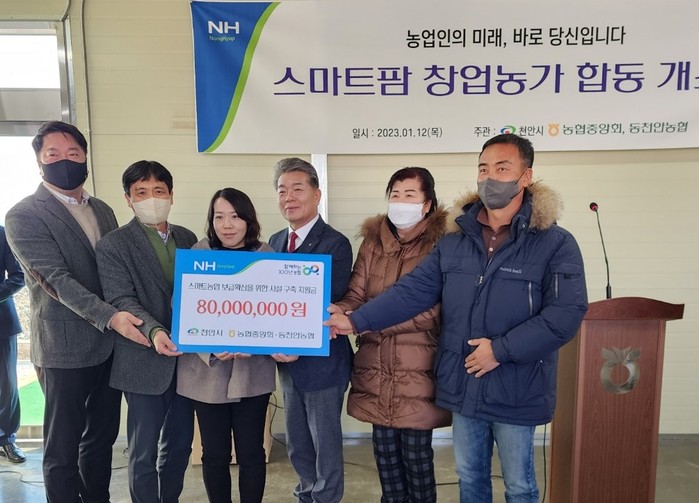 이날 행사는 지우호 농협중앙회 디지털혁신실장과 조덕현 동천안농협 조합장, 천안시 관계자들이 참석한 가운데 농협 스마트팜 인증 브랜드(현판) 수여, 스마트팜 시설보조금 전달, 시설 견학 순으로 진행됐다.