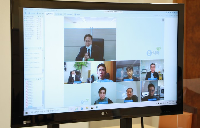 | ▲ 비대면 방식의 '온라인 화상회의'를 통한 각 중소벤처기업 대표와 토론회를 진행했다. (사진출처=조달청) |