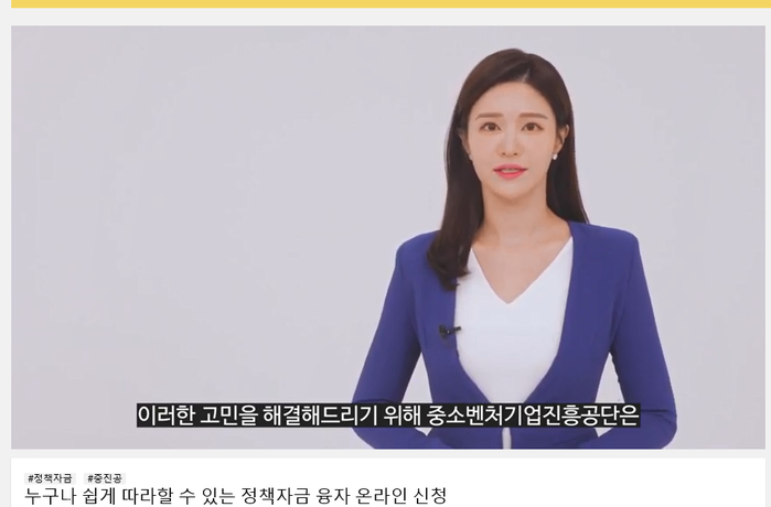 | ▲ '중소기업벤처기업진흥공단'에서 제공하는 정책자금 융자 온라인 신청 Youtube 동영상<사진출처=중소기업벤처기업진흥공단> |