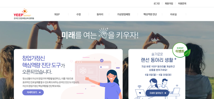 | ▲ YEEP 의 메인 홈페이지 깔끔하게 개편되었다. (=YEEP 홈페이지에서 발췌) |