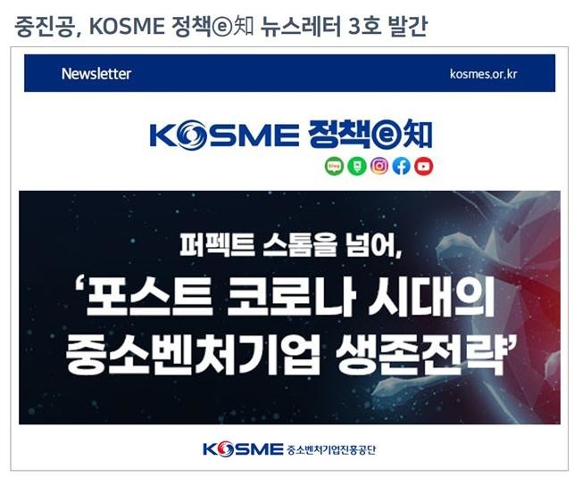 KOSME정책ⓔ知는 ▲최신 정책 이슈(Issue) ▲中企 지원사업 안내(Inside) ▲시의성 있는 연구보고서(Research) ▲지역경제 동향(Region) 등 4가지 주제를 다룬다. 지난 뉴스레터 확인 및 구독 신청은 중진공 누리집-발간자료-KOME정책ⓔ知 메뉴에서 하면 된다.