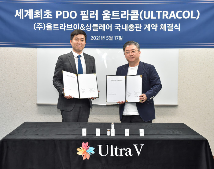 | ▲울트라브이-싱클레어파마, 총판 계약 체결식 (사진제공=울트라브이) |