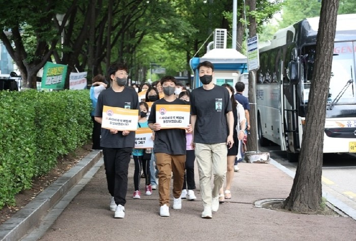 '청소년 사이버폭력을 예방합시다' 슬로건 아래 제6기 대한민국청소년112안전지킴이로 임명된 ‘청소년 안전지킴이’ 학생들과 학부모 100여 명이 참가해 ‘사이버폭력 예방 및 건전한 사이버 문화 실천’ 다짐을 담은 피켓을 들고 캠페인을 펼쳤다.