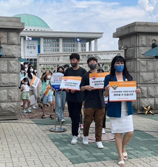 (사)한국여성유권자서울연맹(회장 이섬숙(전국아동여성안전네트워크 공동대표))은 지난 16일, 여의도 국회의원회관 제1소회의실에서 사이버 폭력에 대한 발대식과 함께 국회 근처 일원에서 청소년 사이버폭력 예방 및 근절 안전캠페인을 진행했다고 밝혔다.