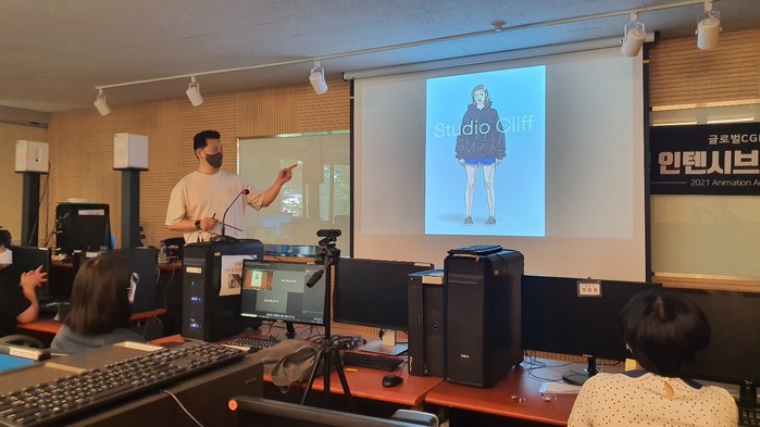 | ▲ ‘스튜디오 클리프’의 박민 감독이 ‘2021 Animation Acting Intensive Workshop’에서 강의를 하고 있다<사진제공=세종대학교>. |
